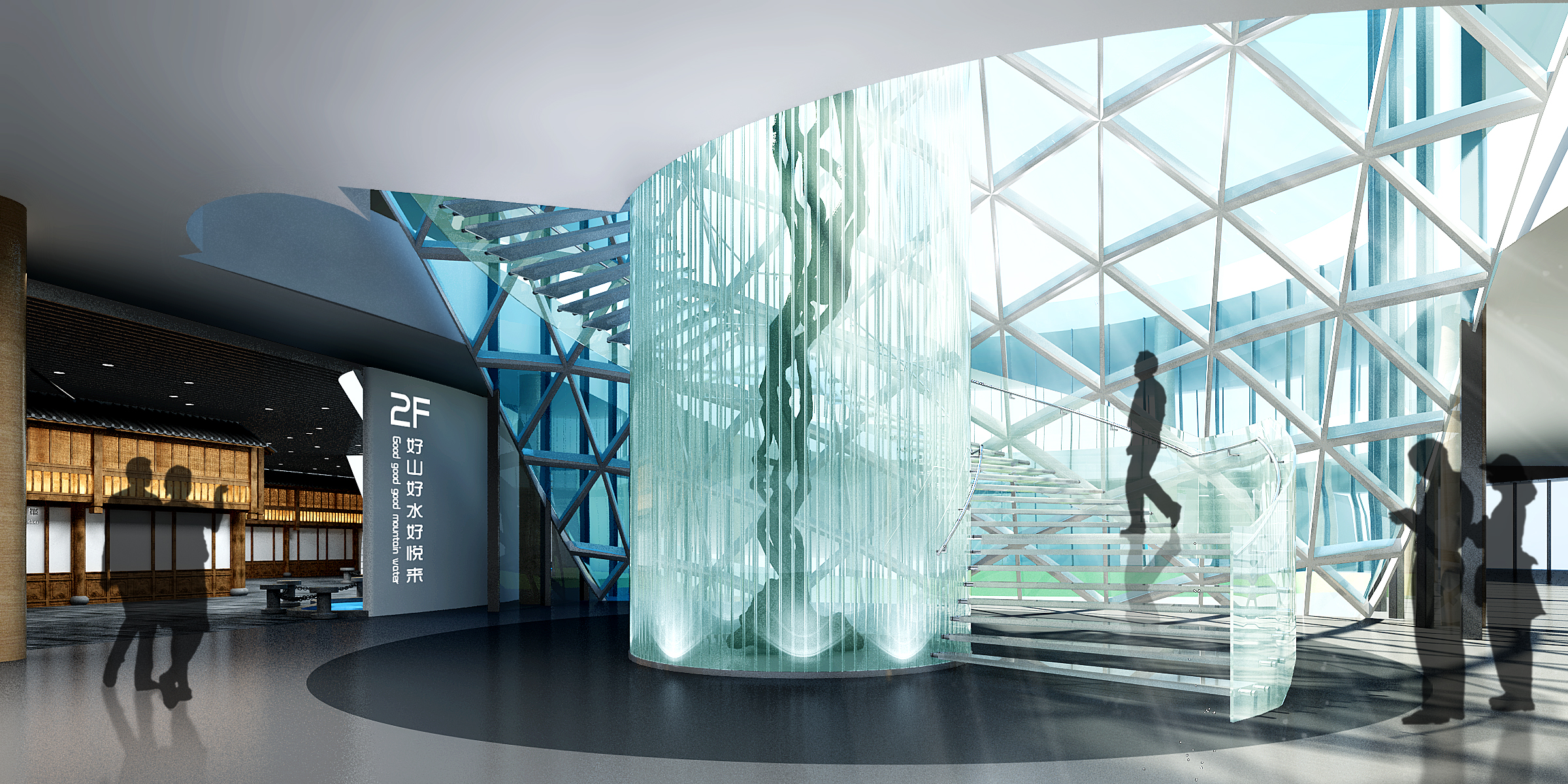 重慶仙桃國際數(shù)據(jù)谷展示體驗中心,展廳主要布局了序廳、仙桃印象、規(guī)劃宏圖、創(chuàng)新平臺、綜合產品體驗區(qū)、幻...